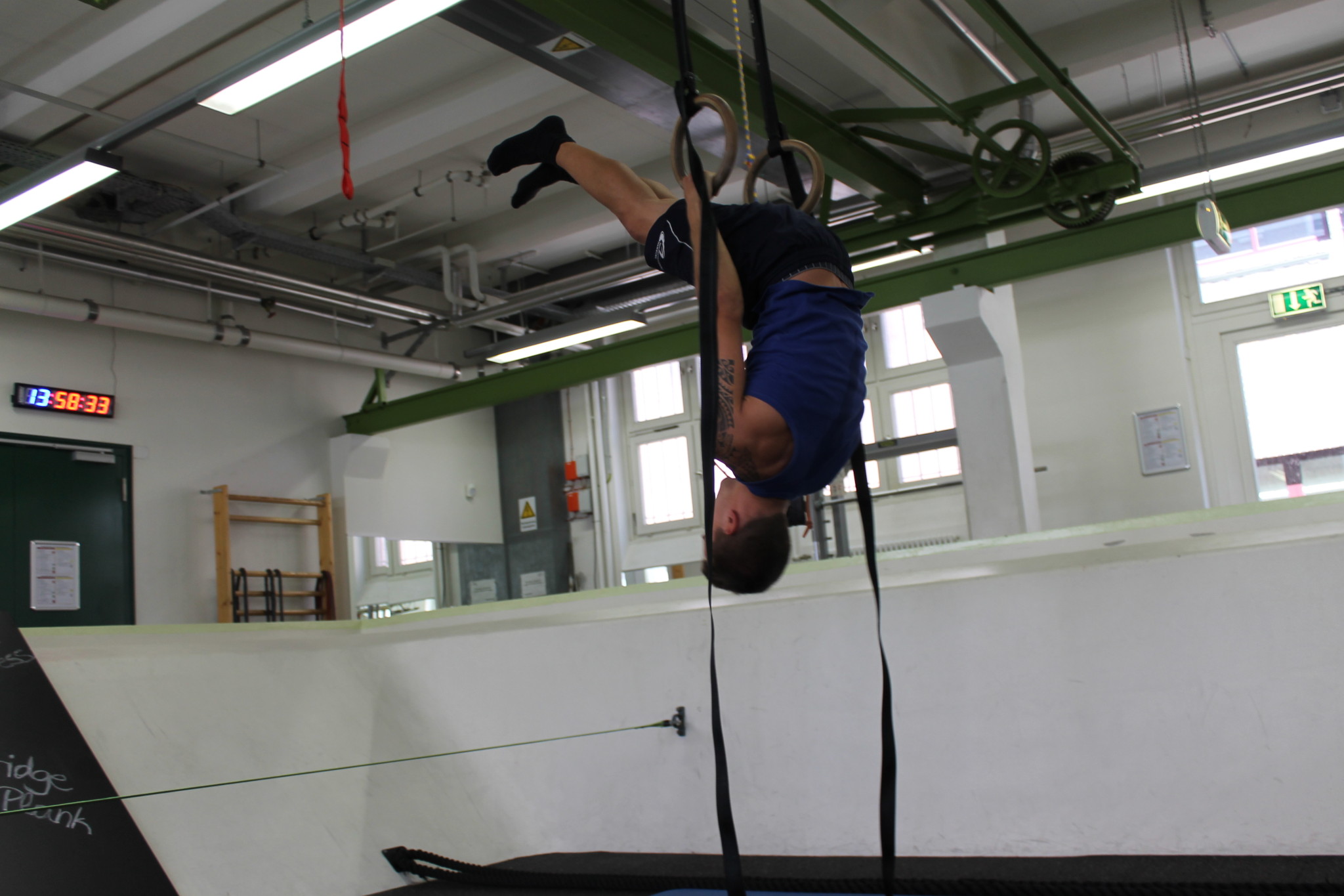 An den verstellbaren Ringen kannst sowohl ganz normal rudern, als auch fortgeschrittene Turnerübungen ausführen.