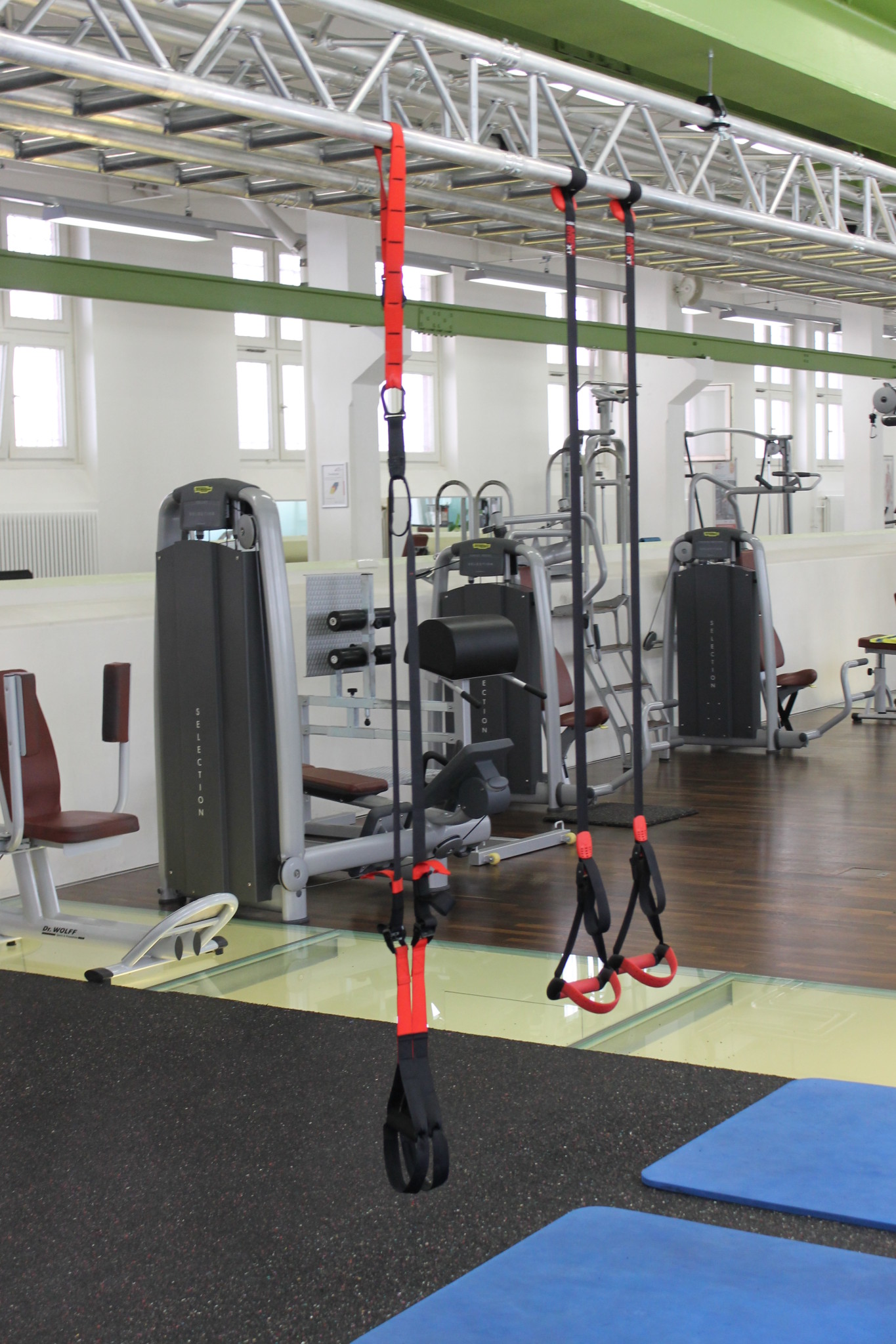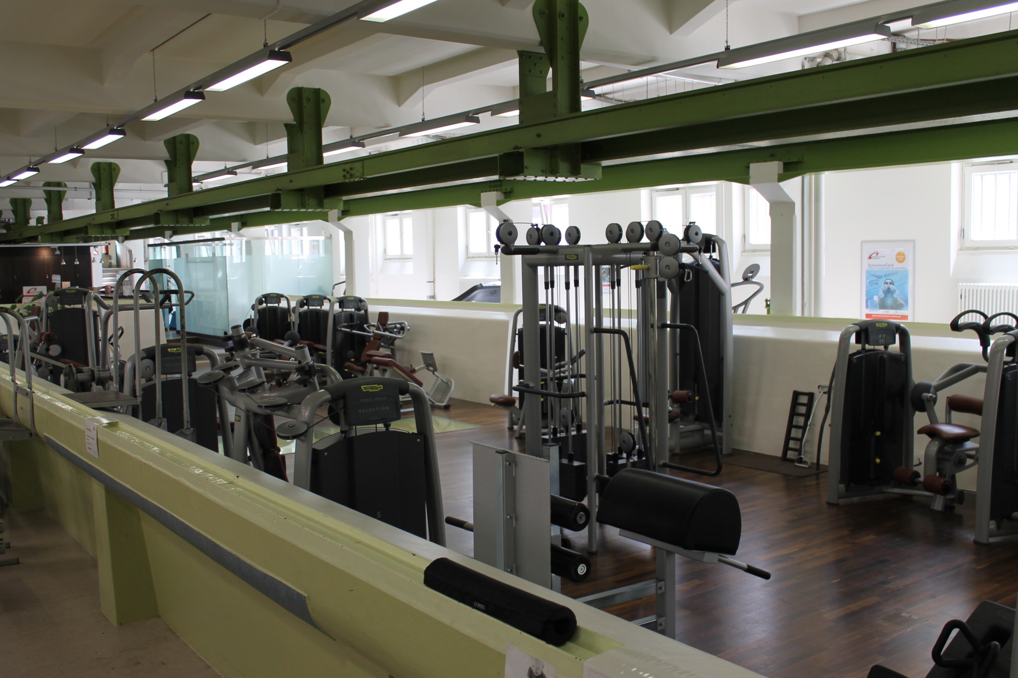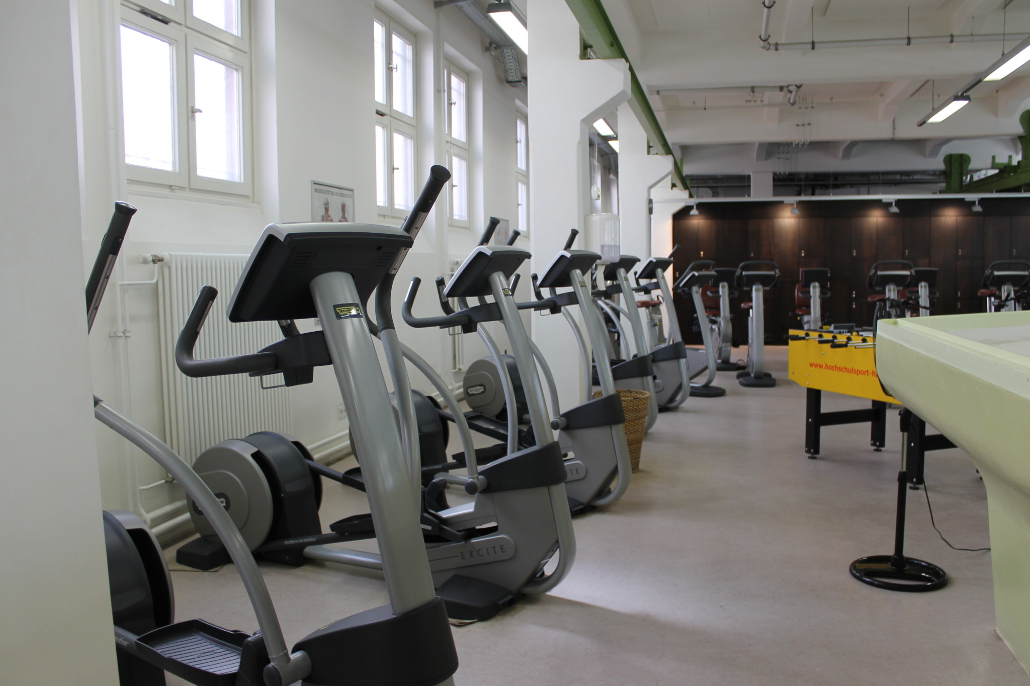 Bank und Bizepscurlmaschine sind in die Ecke „verbannt“ worden. Bankdrücken kann man auch wunderbar (und sicherer) in den beiden Powerracks durchführen.