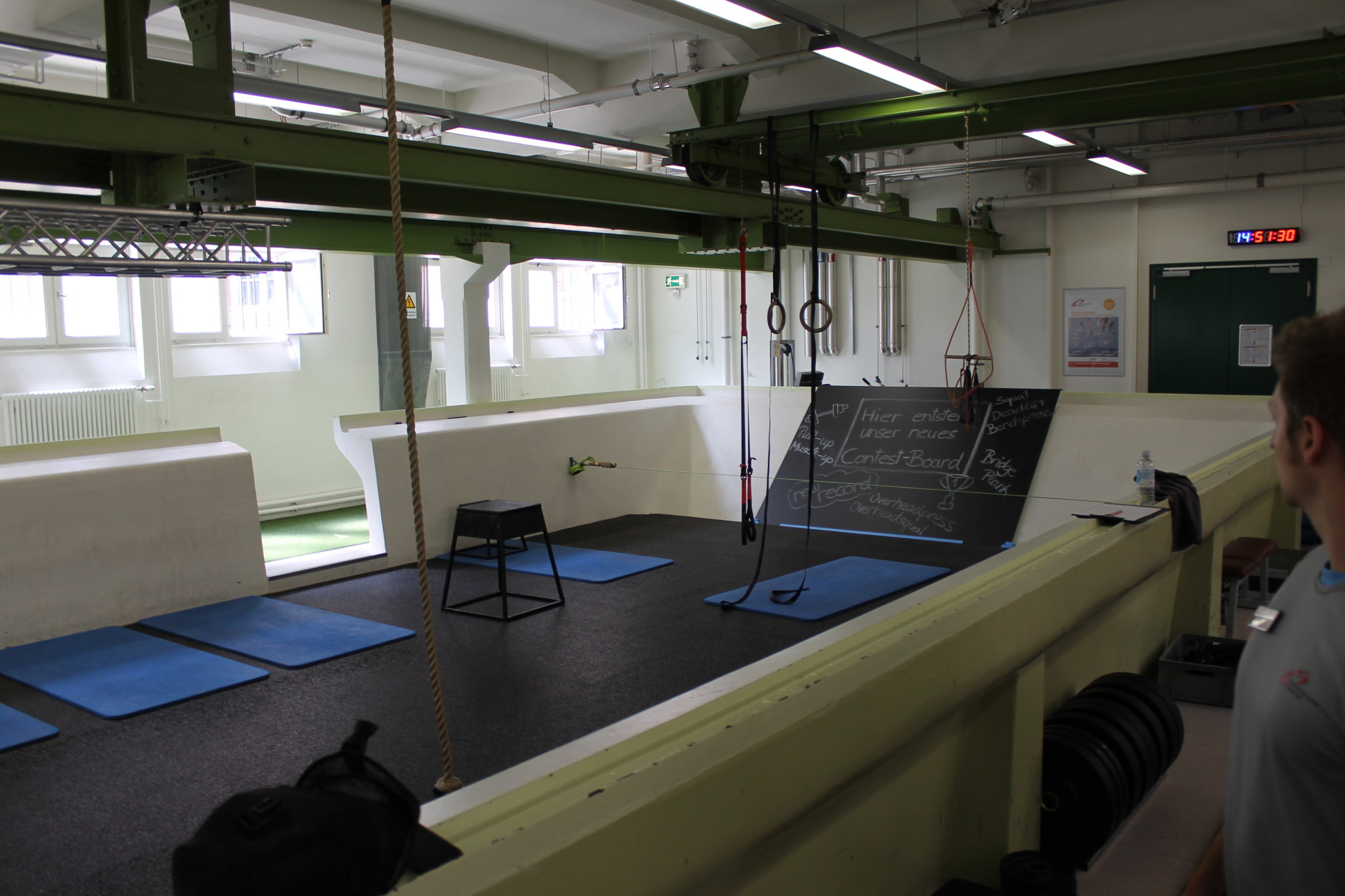 Seit neuestem gibt es auch Spezialausstattung, wie diese Plattformen (selbstgebaut!) um z.B. beim Kreuzheben erhöht zu starten („erhöhtes Kreuzheben“) oder um sich selber draufzustellen (z.B. beim „Defizit Kreuzheben“.