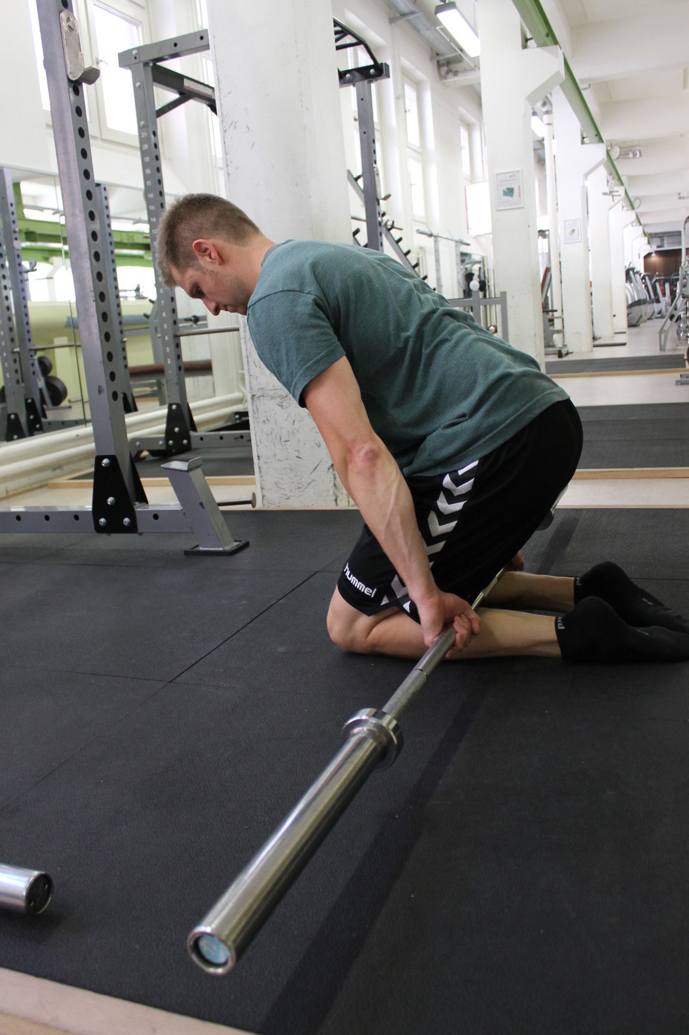 Es gibt auch spezielle Halterungen (fest im Boden verankert) um frei mit der Langhantel Rudern zu können. Das ist eine Seltenheit in den meisten Fitnessstudios.