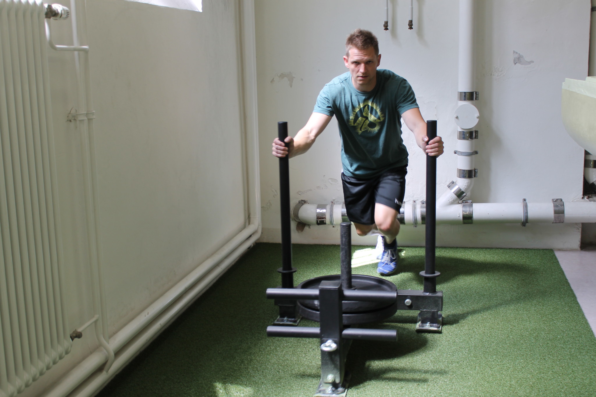 Das ist der Schlitten, den du zum Spass (und für deine Ausdauer) auf extra dafür ausgelegtem Rasen hin- und zurückschieben kannst. Zu leicht? Keine Sorge, der Schlitten kann sehr schwer beladen werden…