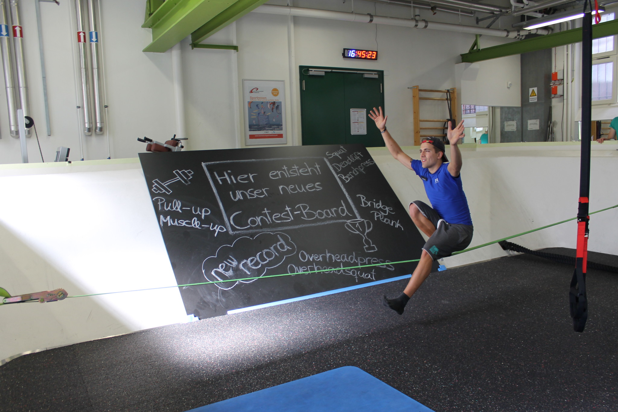 Persönliche Rekorde („PRs“) in den Grundübungen werden auf dem Contest-Board festgehalten.